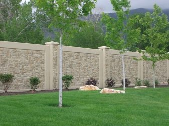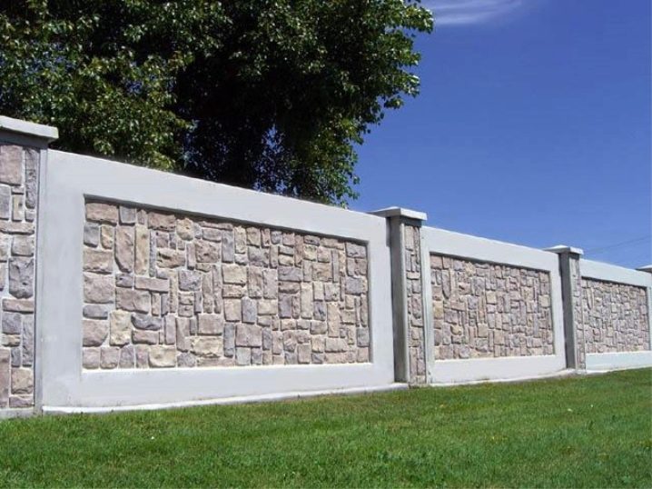 تقدم العديد من الشركات المصنعة إنتاج عناصر معيارية مخصصة لأسوار المقاطع الجاهزة ، بحيث يمكنك اختيار النمط الذي تريده: الحجر الطبيعي ، والخشب ، والطوب.