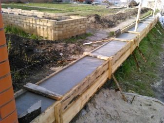 تحت مثل هذا السور الضخم ، يتم وضع أساس شريطي من الخرسانة ذات الدرجات الثقيلة على أساس الأسمنت البورتلاندي مع التعزيز مسبقًا. يتم سحب الخندق بعمق لا يقل عن 0.7 متر.
