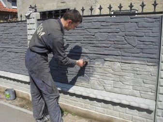 بعد بناء سياج خرساني ، يمكنك رسمه بنفسك. لا تؤدي اللوحة وظيفة زخرفية وجمالية فحسب ، بل تحمي أيضًا من التأثيرات السلبية الخارجية.