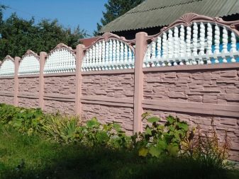 يبدو السياج المقطعي الجاهزة أجمل بكثير. تتكون هذه الخيارات ، التي تسمى أيضًا إعداد النوع ، من 2-4 أقسام ، يتم إدراجها فوق بعضها البعض في أعمدة الدعم. في الآونة الأخيرة ، تحظى بشعبية كبيرة ، وفي متاجر مواد البناء هناك فرصة لاختيار العديد من الأنواع بتشطيبات زخرفية مختلفة. الميزة هي أن هذه منتجات تامة الصنع لا تحتاج بعد التثبيت إلى تزيينها بأي شيء..