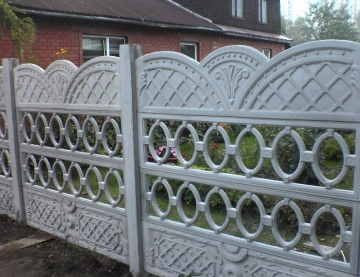 من بين الخيارات العديدة للسياج الخرساني لمنزل خاص ، يجدر النظر في بعض الصور الناجحة.
