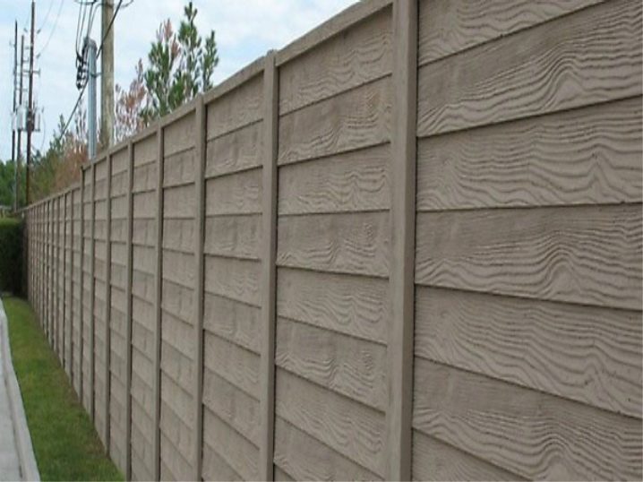سياج خرساني فاخر بتشطيبات خشبية. في المظهر ، لا يمكنك حتى القول أنه مصنوع من مادة مختلفة تمامًا..