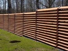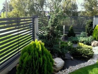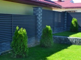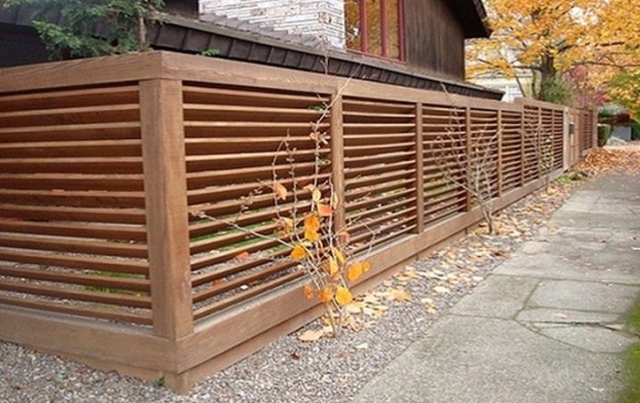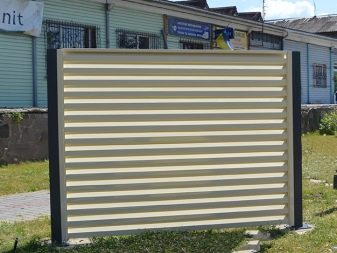 على الرغم من أن شكل الستائر معروف للكثيرين ، فقد تم استخدامه مؤخرًا نسبيًا في مجال المبارزة. يتم تثبيت أعمدة الدعم ، والتي تعد عناصر متكاملة للأسوار ، بإحكام على الأرض ، ويتم وضع شرائح أفقية ورأسية بينها. يتم إمالتها لخلق التأثير المطلوب. من الجانب يبدو أنه تم تثبيت سياج صلب حول منطقة المنزل.