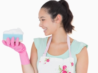 عند اختيار الخيار الثاني ، انتبه إلى حقيقة أن القاعدة لا تخدش الصفائح. من الأفضل أيضًا غسل الخرق بتلك المنتجات التي لها بنية هلامية.. لا ينصح باستخدام مركبات تحتوي على الكلور أو مكونات عدوانية أخرى للتنظيف..