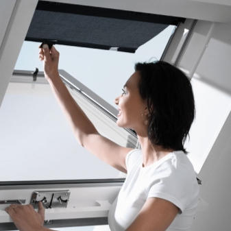 عند اختيار لون ومواد الستائر لنوافذ السقف ، يجب أن يؤخذ في الاعتبار أن المزيد من الأشعة فوق البنفسجية تأتي من خلال فتحات نوافذ العلية وأن درجة تسخين الغرفة أعلى من ذلك بكثير. لذلك ، من الضروري التفكير ليس فقط في الميزات الداخلية ، ولكن أيضًا في التطبيق العملي للمادة ، وقدرتها على حماية الغرفة من ارتفاع درجة الحرارة.. هذا هو السبب في إنتاج المنسوجات الحديثة مواد خاصة للستائر السقفية.. لديهم طبقة طلاء مع عناصر رقائق لتعكس ضوء الشمس..
