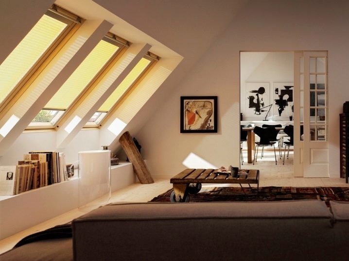 سيكون المظهر غير المعتاد للأقمشة المطوية زخرفة رائعة لنافذة السقف. تتناسب بإحكام مع الزجاج ، وتخلق جوًا أنيقًا ، وبفضل الطيات ، فهي تحمي بشكل موثوق من أشعة الشمس..