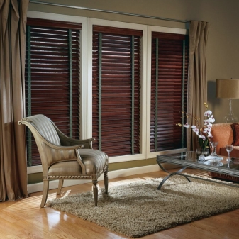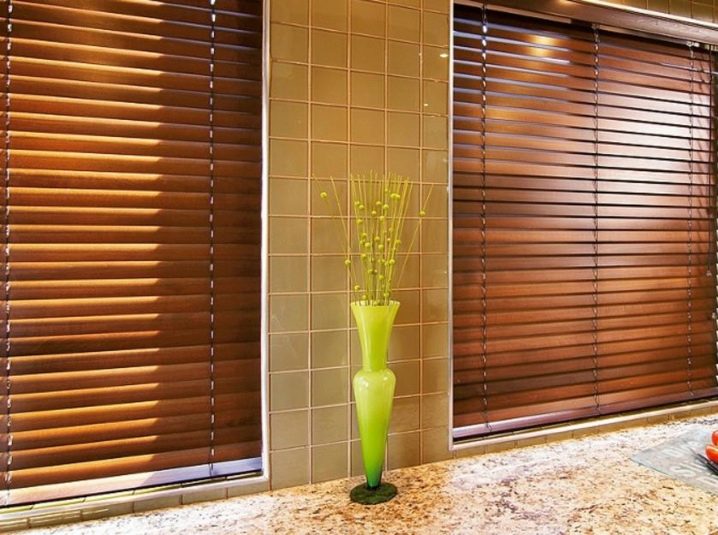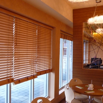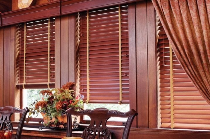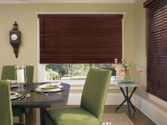 ستائر فينيسية خشبية – أكثر أنواع النخبة المقدمة. الرقائق مصنوعة من أنواع خشبية باهظة الثمن وتبدو رائعة وفي نفس الوقت صديقة للبيئة في الداخل. الخشب مادة “متقلبة” نوعًا ما ويتطلب معالجة خاصة. له بطلان التنظيف الرطب ، فمن الممكن فقط لمسح الصفيحة بمنظف خشب خاص. من الأسهل بكثير العناية بالستائر المصنوعة من الخيزران ، والتي تعمل كنظير غير مكلف للستائر الخشبية. إنها لا تبدو أسوأ ، في حين أنها أقل غرابة وتطلبًا ، فإنها تتحمل التغيرات في درجات الحرارة ويمكن تثبيتها حتى في المطبخ.