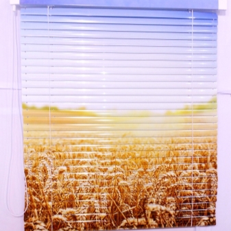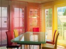الستائر الأفقية مطلوبة عند تزيين الشرفة. تتيح لك مجموعة واسعة من الألوان اختيار ليس فقط الستائر البيضاء الكلاسيكية للشرفة ، ولكن أيضًا الستائر الساطعة ، كما في الصورة. عند اختيار الستائر للمطبخ ، أولاً وقبل كل شيء ، يجب أن تفكر في وظائفها. يمكن اختيار النماذج البلاستيكية لأي تصميم داخلي تقريبًا ، بينما تبدو جذابة ومثيرة للاهتمام. على سبيل المثال ، يستخدم هذا المطبخ ألوانًا شبيهة بالخشب..