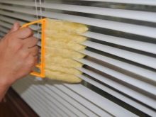 - الطريقة الأكثر شيوعًا اليوم هي العناية بفرشاة خاصة.. يسمح تصميم مثل هذا الجهاز بالغبار من جانبي الصفيحة مرة واحدة. يصف العديد من ربات البيوت هذه الطريقة بأنها غير عملية ، لأن الغبار يستقر لاحقًا على الأثاث أو نفس الستائر..