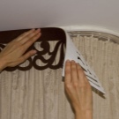 - الخيار الثالث يتكون من استخدام الفيلكرو المعروف والغراء. يجب أن يقال على الفور أن مثل هذا التثبيت للغطاء سيكون مدى الحياة ، وسيكون من المستحيل إزالته لاحقًا من الكورنيش. للقيام بذلك ، يتم لصق جانب واحد من الفيلكرو على الستارة بالغراء الفائق ، ويتم لصق الجانب الآخر مباشرة على الغطاء نفسه. علاوة على ذلك ، يرتبط كلا الجزأين ببعضهما البعض. يمكنك أيضًا وضع الغراء على الجزء الداخلي من الفيلكرو بين الكورنيش والغطاء لمزيد من القوة..