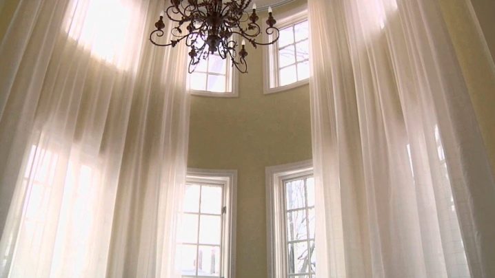 - التصاميم رائعة للأسقف العالية. تحريك مثل هذه الستائر الكبيرة أمر صعب للغاية. لذلك ، تتيح الأنظمة تبسيط حل هذه المهام..