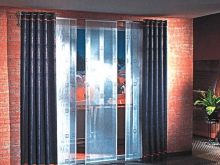 - ستائر منزلقة. لتحريك اللوحة القماشية ، يتم توصيل كابل خاص بحاملها ، مما يغير موضع المنتج في الفضاء.