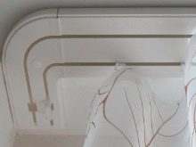 تحظى النماذج البلاستيكية بشعبية اليوم نظرًا لسعرها المنخفض ومتانتها الجيدة. بناءً على رغبات العميل ، يمكن تقوية الإطار البلاستيكي بحيث يمكنه تحمل الوزن الأكبر للستائر. في أغلب الأحيان ، يتم تحديد لون الكورنيش بنفس لون السقف..