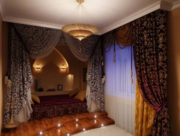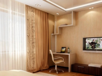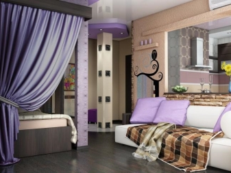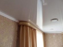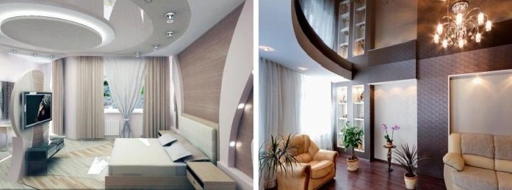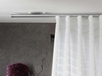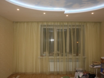 إذا كنت تنوي تعليق ستارة منفصلة في منتصف الغرفة ، يفضل استخدام الهياكل السرية. لا يعد تثبيت الستائر هو الشيء الرئيسي في هذه الحالة بأي حال من الأحوال ، وسيكون من الأفضل عدم التركيز عليها. الكورنيش الملتوي الذي يقسم المساحة لا يبدو مثيرًا للإعجاب ، لكن المكانة هي مسألة مختلفة تمامًا. من غير المحتمل أن يكون من الممكن تنفيذ مثل هذا التصميم بنفسك دون الإضرار بسقف التمدد ، لذلك من الأفضل الوثوق بالمحترفين.