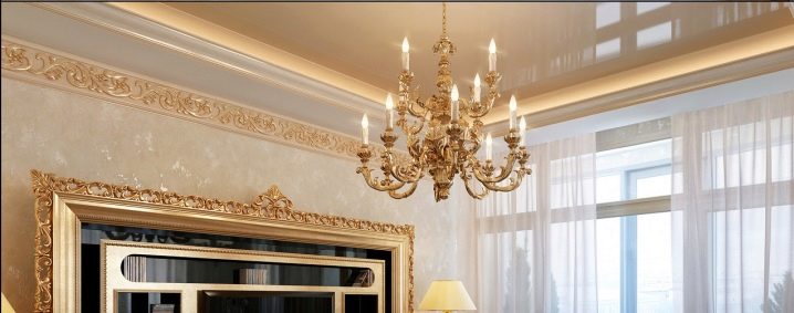يلعب نسيج السقف نفسه دورًا مهمًا ، ويعتمد عليه اختيار خيار أو آخر. تعكس الأسطح اللامعة الضوء بشكل أفضل. باختيار كورنيش مناسب ، مكمل بالإضاءة ، سوف تخلق تأثير صب الضوء في الغرفة. تبدو نعومة ونعومة الخطوط بشكل عام جذابة وأنيقة.