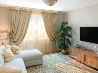 يجدر التركيز على أسلوب الغرفة.. على سبيل المثال ، سيبدو القالب الخشبي الغني جيدًا في غرفة على الطراز الباروكي أو غرفة كلاسيكية ، ولكن من الواضح أنه لن يتناسب مع أسلوب الحد الأدنى. للديكورات الداخلية الحديثة ، يفضل اختيار الأفاريز المخفية. إن التأثير المثير للاهتمام للستائر المتدفقة من العدم يتوافق تمامًا مع مفهوم الوظيفة والتكنولوجيا العالية.