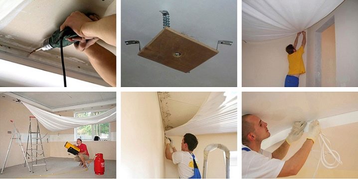 - تمدد السقف. في السابق ، كان من الضروري لصق الحلقات الواقية ذات الثقوب المحترقة للالتواء عليها. من الأفضل حرق الثقوب حتى تذوب الحواف..