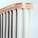يجب إغلاق نهايات الكورنيش المعدني ، حيث يتم استخدام أغطية بلاستيكية عادية أو أطراف زخرفية. يمكن أن يكون شكل الأطراف متاحًا تمامًا ، من الأوراق المتواضعة إلى الكرات الزجاجية البراقة. يمكنك تعليق الستائر على مثل هذا الكورنيش باستخدام حلقات العيينة أو باستخدام مشابك الغسيل المزخرفة. تأتي قضبان الستائر الخشبية عادةً مع مجموعة من الحلقات يتم إدخال مشابك الغسيل فيها لتثبيت الستائر..