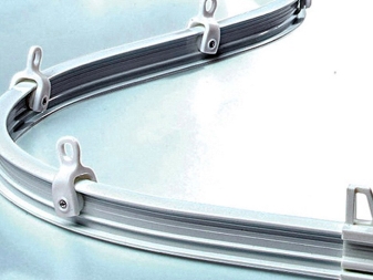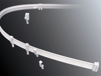 قضبان الستائر المرنة هي مجموعة متنوعة أخرى.. يمكن أن تكون مصنوعة من كل من PVC والألمنيوم المطلي بالبوليمر. إنها شريط كثيف ، لكن بلاستيكي ، يوجد على سطحه متسابقون بخطافات. يمكن تثبيت الشريط بالسقف بسبب وجود ثقوب أو مشابك زنبركية أو أقواس (مقاطع ألمنيوم). هذه الأجهزة مريحة للغاية لتزيين النوافذ الكبيرة أو حواف الشرفة ذات التكوين المعقد.. يمكن أن تكون مجهزة بنظام تحكم في الأسلاك.
