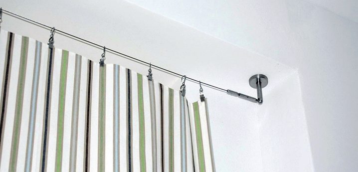 يمكن أيضًا تركيب نوع آخر من الكورنيش على الأقواس – الخيط – على الجدران والسقف. هذه قضبان ستائر مخفية مصنوعة من خط معدني متين ، تكاد تكون غير مرئية على خلفية الستارة. يمكن للمراقب رؤية قوسين فقط يتم ربط الخيط عليهما ، وبالتالي خلق الشعور بأن المادة تطفو في الهواء دون أي دعم مرئي. يمكن تعليق الستائر الخفيفة جدًا أو التول جيد التهوية فقط على مثل هذا الخيط. لن يكون الكورنيش نفسه مرئيًا في هذه الحالة ، نظرًا لأن الخيط رفيع جدًا ، يتم فقده في ثنايا الستارة. يمكن تعليق هذه الخيوط إما على قوسين على طول الحواف ، أو تأمينها ضد الترهل مع دعم ثالث في المنتصف.