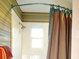 - يبدو الكورنيش المعدني المثبت على الشماعات في الحمام مفيدًا جدًا.. يتم تثبيته بالتوافق التام مع ملامح الحمام ، يتم تعليق ستارة عليه ، وبالتالي تغطية سطح الجدران والأرضية من البقع..