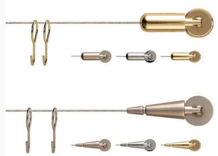 - خطافات أو مشابك غسيل لتوصيل الستائر وقضبان الستائر ، وعادة ما تكون مصنوعة لتتناسب مع لون الكابل.