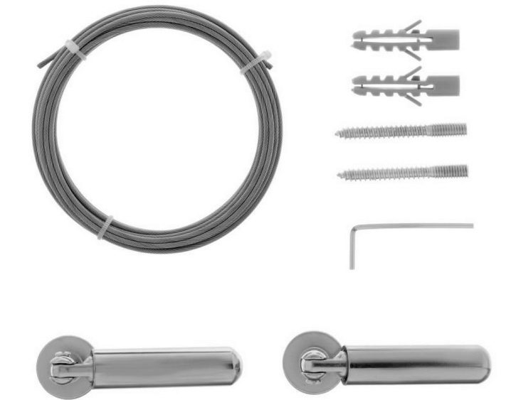 لا يمكن أن يحتوي المنتج على الفولاذ فقط ، ولكن أيضًا من النحاس الأصفر أو الكروم أو النحاس بطبقة واقية. يمكنك التمييز بين أنواع تركيب الخيوط الفردية والمتعددة. تحظى كورنيش جدار السلك المكون من صفين بشعبية خاصة الآن.