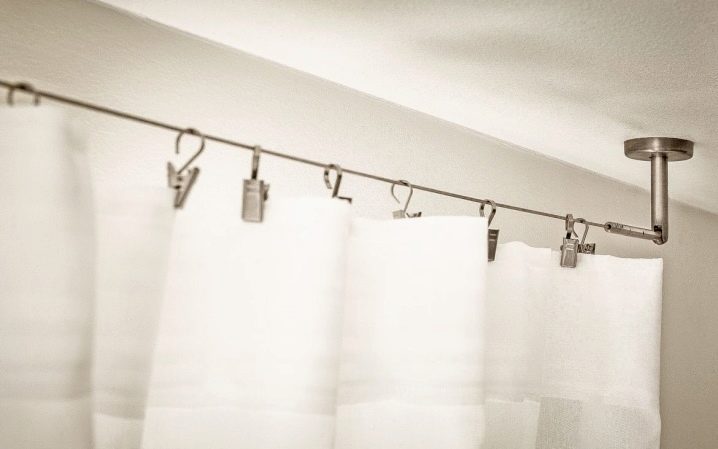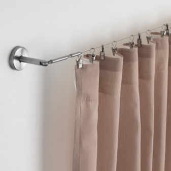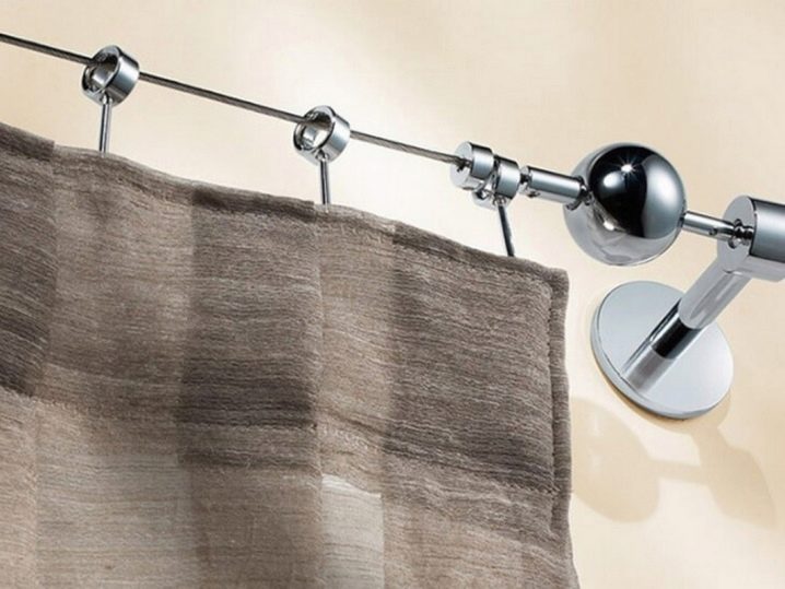 يمكن أن يصل خيط الستائر إلى خمسة أمتار في داين ، لكن هذا ليس الحد الأقصى. يمكن وضع مثل هذا الخيط ليس فقط في صف واحد ، ولكن أيضًا في صفين أو ثلاثة (بين قوسين). يتيح لك ذلك الجمع بين العديد من التول بألوان مختلفة وإنشاء تصميم داخلي جميل بشكل غير عادي.. بعد الضبط ، يمكنك إزالة الطول الزائد للخيط باستخدام قواطع الأسلاك أو لفه وإخفائه بعناية على الجانب. يجدر الانتباه ليس فقط إلى التصميم ، ولكن أيضًا إلى ميزات الاستخدام التالية. يمكن تعليق نسيج النسيج الخفيف فقط على أفاريز الخيوط: الشيفون ، والتول ، والحجاب هو الأنسب لهم. الستائر أو الستائر ثقيلة للغاية ، وسوف يتدلى الخيط الفولاذي أو ينكسر تحت وزنه عند نقطة التعلق باستخدام الدبابيس.