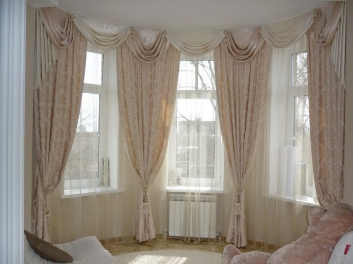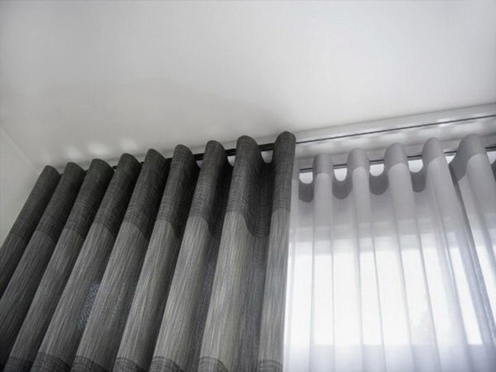 من الأفضل تثبيت ستائر الجاكار الخفيفة أو الساتان أو القطنية بخطافات على كبلين في وقت واحد. لوضع اللمبريكين ، يمكنك استخدام الصف الثالث من الأوتار.