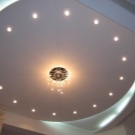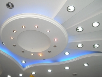 إذا كان السقف مصنوعًا من اللوح الجصي ، فلا توجد صعوبات خاصة وقواعد التثبيت. الشيء الرئيسي هو حساب أماكن الأضواء المستقبلية واختيار الحجم المناسب للتاج للحفر. خلاف ذلك ، هناك احتمال أن يكون الثقب كبيرًا جدًا بالنسبة للمصابيح المحددة وسوف تسقط ببساطة.
