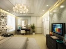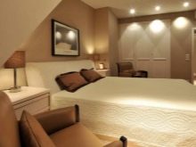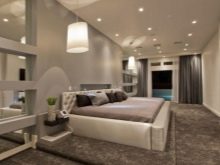 - في غرفة النوم ، سيبدو الوضع الموجي أو الدائري للمصابيح جميلًا ، ويمكن تمييز المنطقة التي يوجد بها السرير فقط ، نظرًا لأن الإضاءة الساطعة في غرفة النوم غير مطلوبة بشكل خاص.