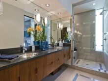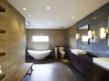 - أما بالنسبة للحمام ، فيفضل وضع المصابيح حول المحيط وتركيب القليل منها في المنتصف أو تركيبها في نصف دائرة من الزوايا المتقابلة..