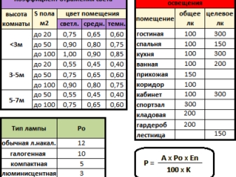 تحتوي كل غرفة على معدل إضاءة معين ، والذي سيكون مريحًا بقدر الإمكان للعيون وإدراك الضوء بشكل عام.. يحسب من المربع وارتفاع السقف. على سبيل المثال ، تتطلب مساحة 1 م 2 من غرفة نوم بارتفاع 2.5 متر ما يقرب من 200 – 250 لوكس. في غرفة المعيشة أو الصالة ، يجب أن تكون الإضاءة أكثر إشراقًا – 400 – 450 لوكس لكل 1 م 2.