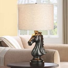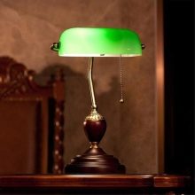 تُستخدم مصابيح الطاولة ذات الألوان الداكنة (البني والأسود والأخضر الداكن والبورجوندي) في كثير من الأحيان في غرف النوم ذات التصميمات الداخلية على الطراز الكلاسيكي أو في المكاتب المنزلية ذات الأثاث الخشبي الصلب. غالبًا ما يتم تزيين هذه المنتجات بالحجارة والزجاج والتذهيب..