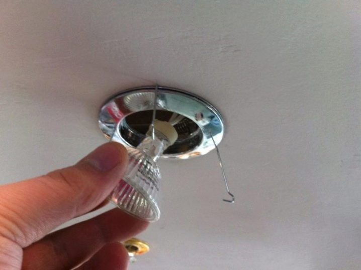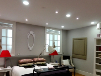 بالطبع ، تعتبر الأضواء الكاشفة المعلقة عناصر مهمة جدًا عند تثبيت الأسقف المتوترة. في الأسقف المعلقة والمعلقة ، يتم استخدام مصابيح LED فقط ، حيث إنه من الضروري ضمان السلامة الكاملة من الحرائق ، وكذلك حماية الطلاء من التشوه بسبب التسخين.
