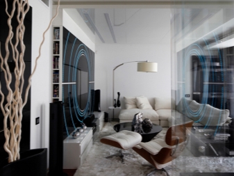 - تقسيم المساحة. يفصل المصباح الأرضي من هذا النوع تمامًا مناطق الغرفة ، مما يدل على منطقة معينة حولها. كما أن الحامل المرتفع للمصباح الأرضي يحدد المساحة بصريًا.