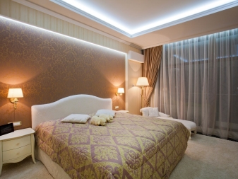 - إذا تم دمج غرفة الاستراحة الخاصة بك مع غرفة المعيشة ، فيمكنك إنشاء إضاءة عامة.. سيطلق على هذا الخيار اسم أوروبي. يمكنك أيضًا إنشاء نوع أمريكي من الإضاءة ، عندما تكون الشمعدانات هي المصدر الرئيسي للضوء. عند تشغيل الأجهزة ، ستتمكن من إضاءة منطقة معينة من الغرفة.