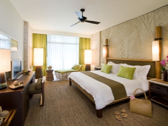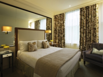 تجدر الإشارة إلى أن المنسوجات يمكن أن تكون أحادية اللون أو متناقضة مع عدة ظلال. هناك خيارات أصلية مزينة بقلادات وشرائط رشيقة ومغطاة بأقمشة جيدة التهوية مع ستائر جذابة.