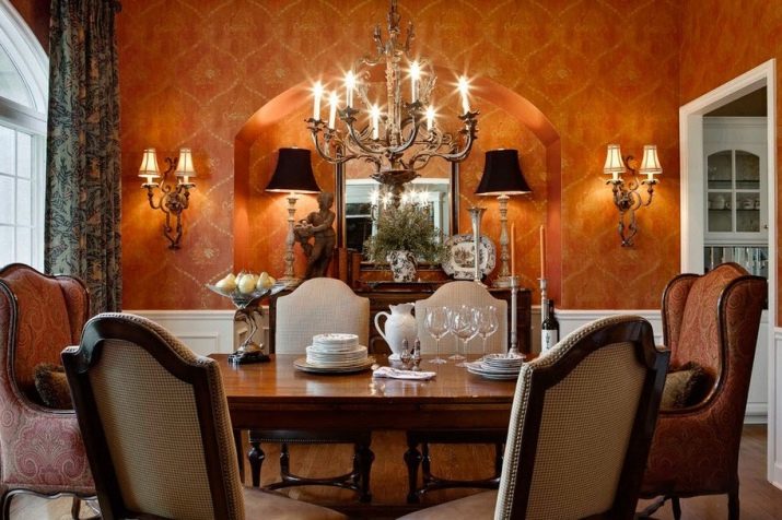 تضيء الشمعدانات الموجودة في القاعة أيضًا المفروشات التي يريد صاحب المنزل إبرازها. يمكن تجهيز الغرفة المزينة على الطراز الكلاسيكي بالعديد من الزخارف والإضافات.