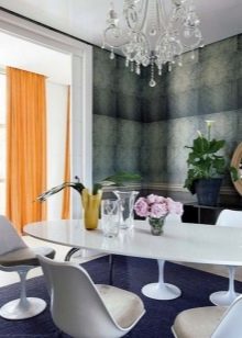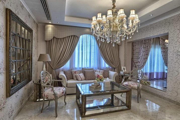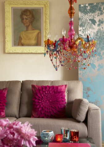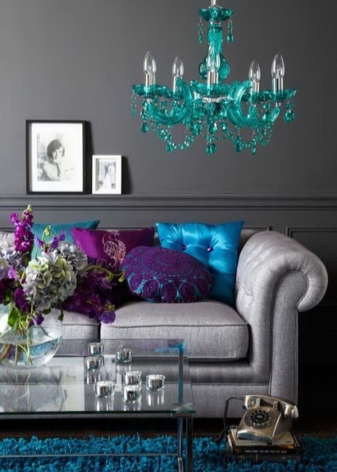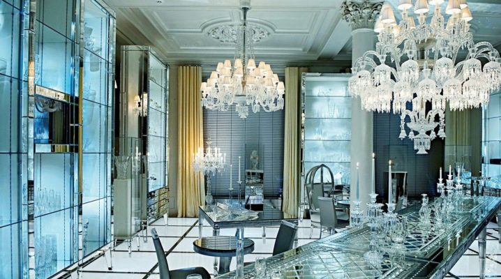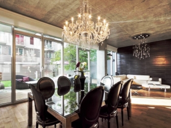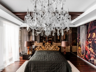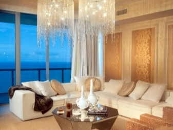 - إذا كانت هناك رغبة في شراء ثريا زجاجية في عدة طبقات ، فمن الجدير بالذكر أن غرفة مثل هذا النموذج يجب أن تتوافق معها..