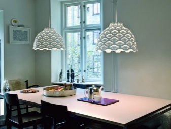 يمكنك اليوم العثور على نماذج قياسية للسقف والقلادة في مجموعة متنوعة من الأحجام. بالإضافة إلى ذلك ، يمكن أن تذهب ظلال غير عادية أو المعلقات الزجاجية.