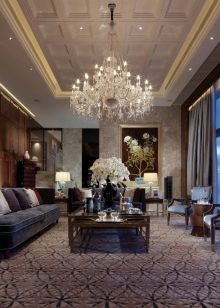 - للحصول على تصميم داخلي “كلاسيكي” ، يمكنك اختيار مجموعة متنوعة من الثريات. غالبًا ما لا تكون هذه نماذج جذابة للغاية ، فهي تجمع بين الأناقة والأناقة غير المسبوقة. يمكن استخدام مجموعة متنوعة من الزجاج والكريستال ومجموعاتها كديكور..