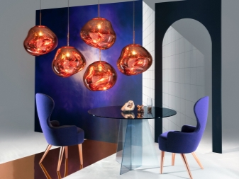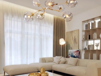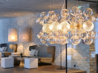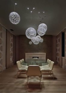 - الطراز الحديث لا يتطلب إضافة أي شيء معقد ، يمكنك اختيار الثريات ذات الكرات الزجاجية. سوف تتناسب النماذج نفسها بنجاح مع أسلوب تكنو. تبدو النماذج ذات الكرات المعلقة بأقطار مختلفة مثيرة للاهتمام أيضًا..