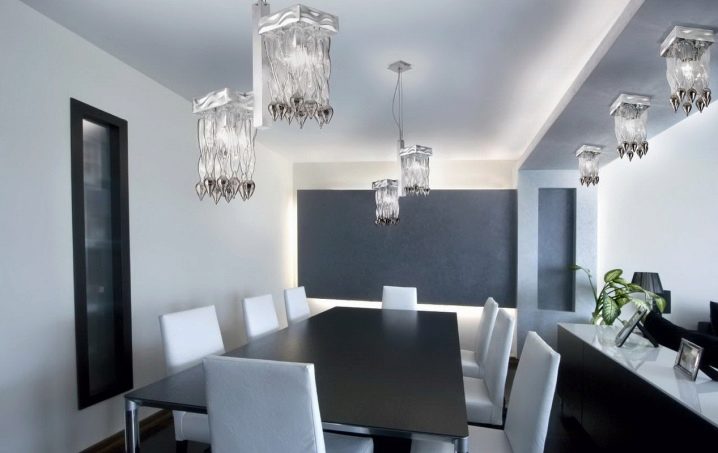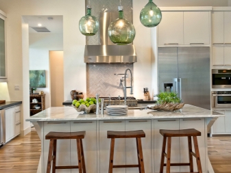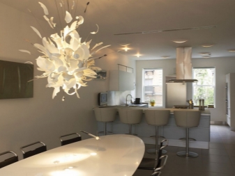 تعتبر الثريات الزجاجية ذات الظلال الشفافة رائعة للمطابخ في مجموعة متنوعة من الأساليب. لا تقل إثارة للاهتمام عن النماذج ذات القطرات الزجاجية والأحجار الزخرفية.. ثريات السقف بلون الكروم مثالية للقاعة أو غرفة المعيشة. هذه النماذج مصنوعة من المعدن وتبدو أنيقة للغاية. في كثير من الأحيان ، يتم وضع نماذج زجاجية من الثريات في منطقة تناول الطعام ، واختيار خيارات لذلك بتفاصيل معلقة تجذب الانتباه دائمًا..