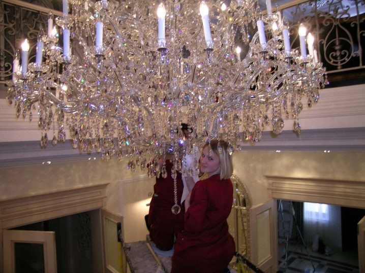 سيكون من الصعب جدًا غسل الثريا نفسها والمعلقات والظلال الزجاجية. كل هذا يتوقف على النموذج. إذا كان من الممكن إزالة الديكور ، فيمكن غسله وتجفيفه بشكل منفصل ، دون استخدام عوامل تنظيف قوية جدًا.. يمكن محو الهيكل نفسه من الغبار. حتى لا يستقر الغبار بهذه السرعة ، من المنطقي معالجة الثريا بعوامل خاصة وبخاخات ذات تأثير مضاد للكهرباء الساكنة..