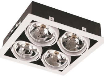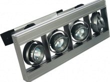 - وحدة واحدة – أضواء كاشفة لهياكل الأسقف المعلقة (غالبًا مصابيح مدمجة) ؛