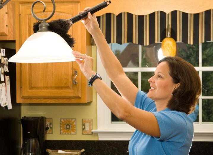 لمنع الثريا من أن تبدو داكنة أو غائمة ، يكفي مسح الغبار من حين لآخر بقطعة قماش مبللة قليلاً. من الأفضل العمل بقفازات نسيج خاصة حتى لا تترك آثارًا وخطوطًا على الزجاج الملون.
