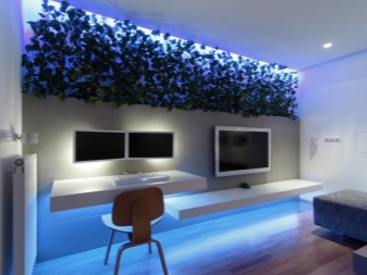 منطقة توهجها كبيرة جدًا ، لذا فهي توزع الضوء جيدًا. كما تسمح لك مصابيح الفلورسنت باللعب بالضوء في المنزل. لذلك ، يمكنك تثبيت المنتجات بأنواع مختلفة من التوهج في اللون والسطوع ، وبالتالي وضع لهجات مثيرة للاهتمام في الغرفة. هذا الخيار مثالي لتقسيم شقق الاستوديو وأنواع المباني الأخرى..
