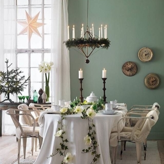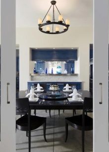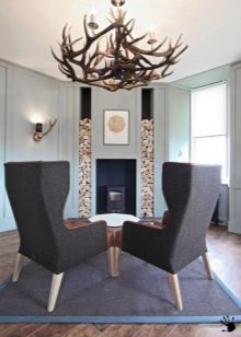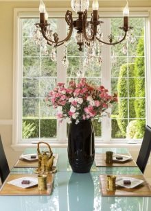 الثريات المزورة بالشموع أمر مختلف تمامًا. ستصبح لهجة مركزية من غير الواقعي التغاضي عنها. وهم ليسوا على الإطلاق جزءًا من تصميم داخلي باهظ الثمن. الشكل المتتالي ، والحد الأدنى من المواد والألوان يتناسب مع التصميم الداخلي البسيط. ولكن إذا تم اختيار ثريا أكثر رشيقة ومميزة ، على سبيل المثال ، بأحرف برونزية ، فإن الأمر يستحق دعمها بعناصر مزورة أخرى ، على سبيل المثال ، حامل زهور.