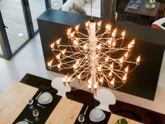 لا يمكن تركيب مصابيح على شكل شمعة في أي مكان. أولاً ، لا يسمح وزنها وكثافتها بالتعليق المتصاعد في الغرف ذات الأسقف المنخفضة. ستعمل تركيبات الإضاءة الكبيرة على تقليل المساحة بصريًا.